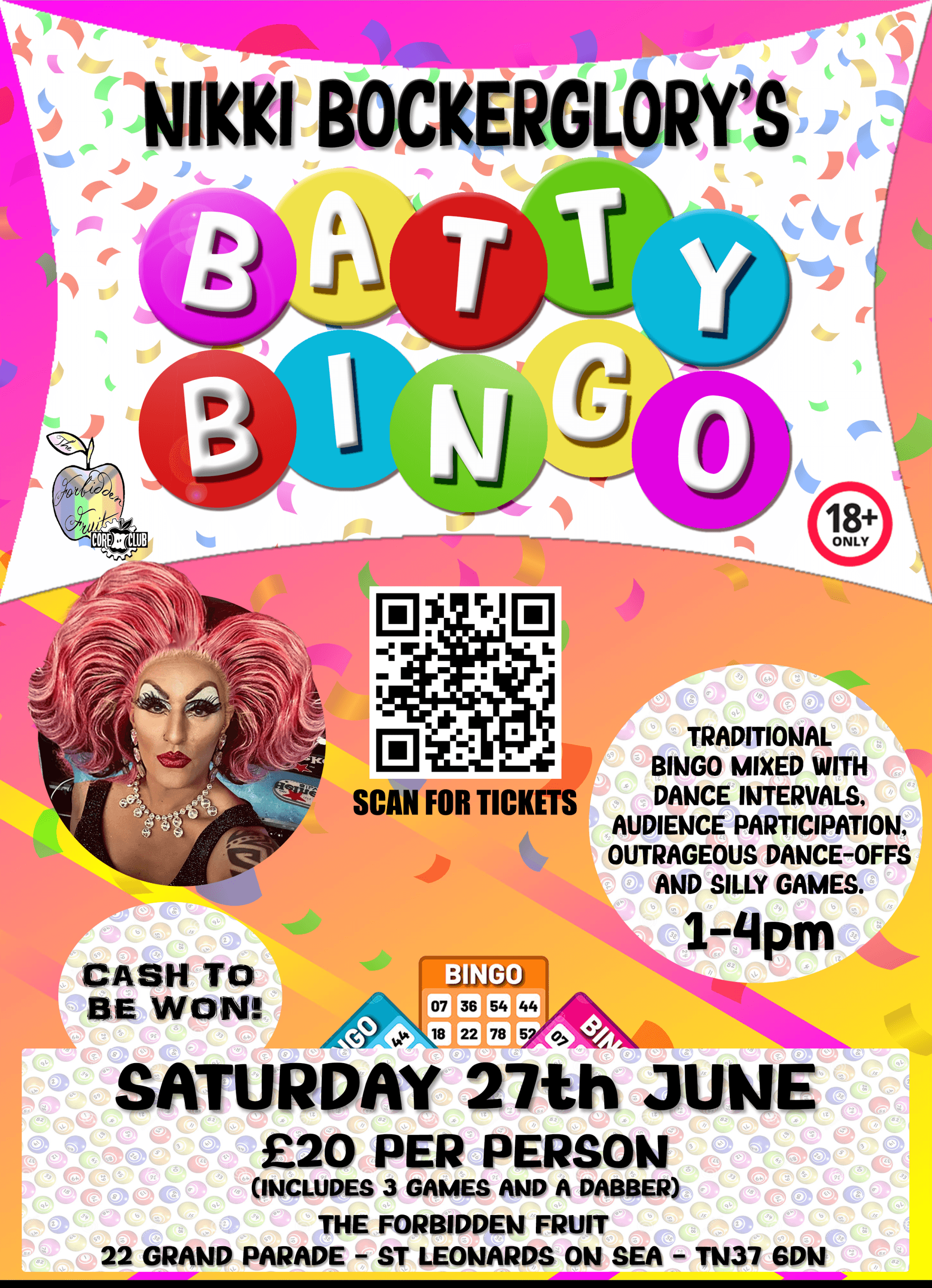 You’ll come for bingo; but find something far more extraordinary: a glorious afternoon of unexpected joy, fuelled by glitter, questionable dance moves, a kaleidoscope of confetti raining down from the disco ball and the sheer, unadulterated brilliance of Batty Bingo.